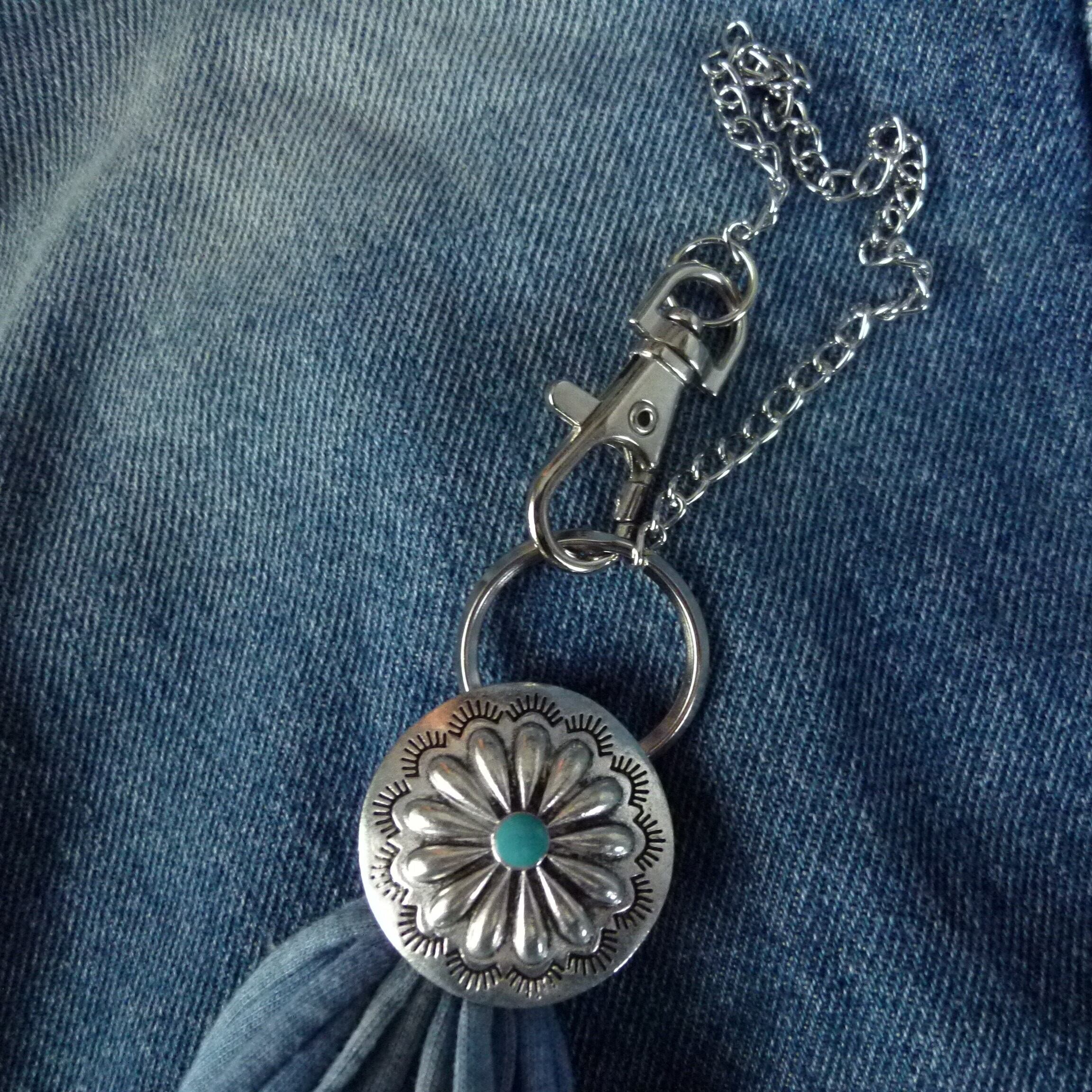 SLVコンチョボタン、Tシャツヤーン(タイダイヴィンテージブルー)、ワックスコード、ニコイル≪二重カン≫(ロジウム)、ナスカン、チェーン、丸カン(ロジウム)