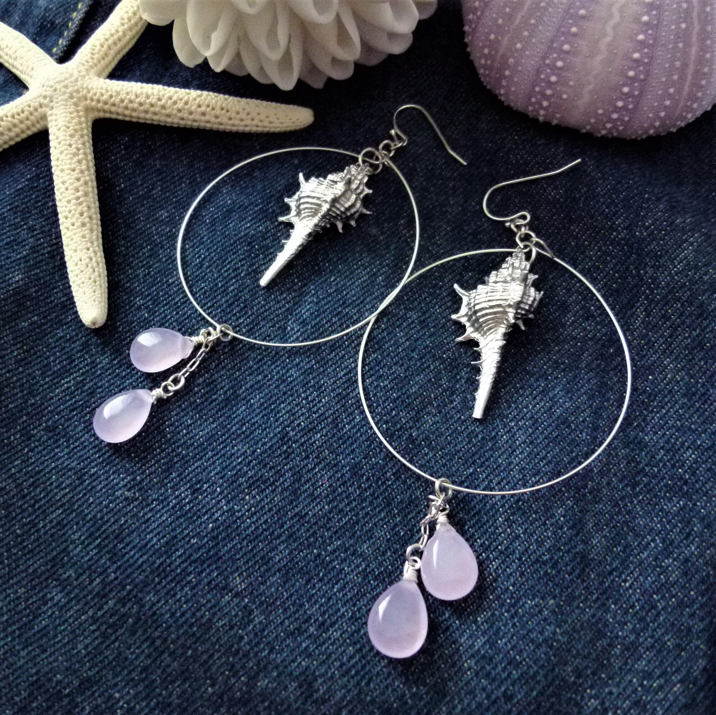 ブラス≪真鍮≫チャーム(シェル・マットSLVメッキ)、ジェイド(ラベンダー・ペアシェイプ)、ピアスフック、丸カン、チェーン(ロジウム)、アーティスティックワイヤー(SLVカラー)